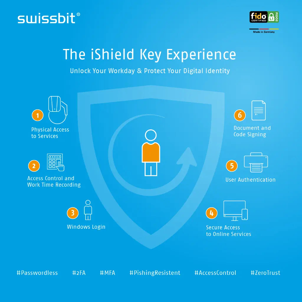Swissbit's iShield Key 2 Pro is a foundational element of a Zero Trust strategy, facilitating the implementation of MFA and compliance with regulatory requirements such as NIS2, CRA, DORA, and the U.S. Executive Order on cybersecurity. The iShield Key 2 Pro MIFARE USB-C includes MIFARE DESFire, FIDO2 and PKI capabilities.Â